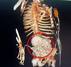 A descoberta revelou que a paciente era portadora de litopedia, também conhecida como “bebê de pedra” – uma condição que ocorre quando um feto morto permanece no corpo da mãe e passa por um processo de calcificação. Trata-se de um fenômeno raríssimo, com menos de 300 casos documentados em toda a história da medicina.